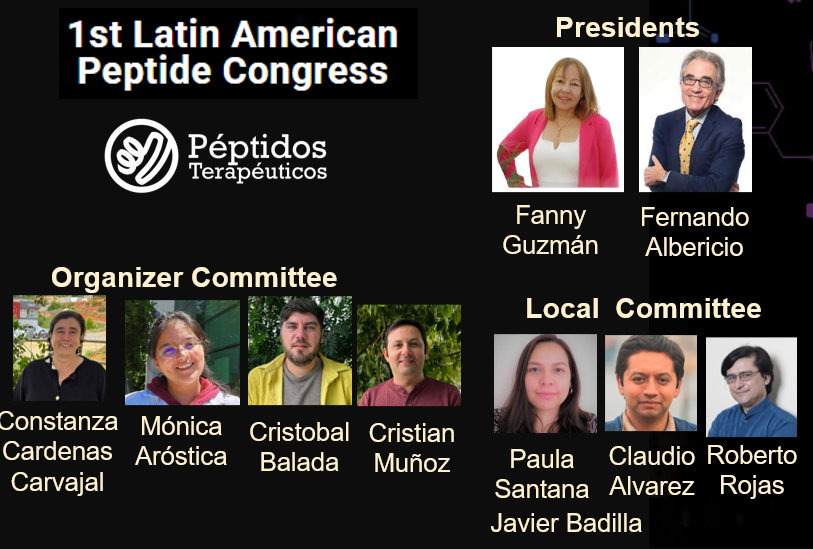 El congreso fue organizado por la Dra. Fanny Guzman (Pontificia Universidad Católica de Valparaíso, Valparaíso, Chile) y el Dr. Fernando Albericio (University of KwaZulu-Natal, Durban, South Africa)